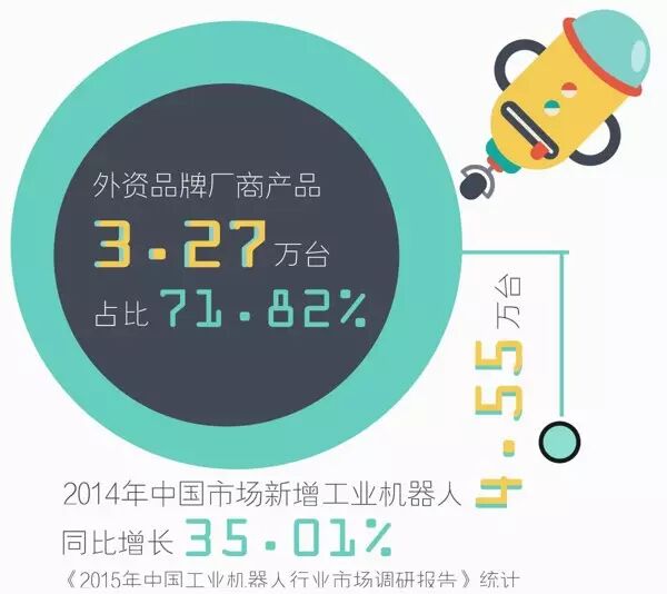不同于中国从上世纪90年代才开始大范围使用工业机器人,日本对于工业机器人的研究已经有40多年的历史,目前工业机器人的使用率和技术水平也都处于世界领先地位。根据《2015年中国工业机器人行业市场调研报告》统计,2014年,中国市场新增工业机器人4.55万台,同比增长35.01%。其中3.27万台是外资品牌厂商产品,占比71.82%。在熊成龙看来,中国的工业机器人市场发展最大的问题是企业很难拿出大量的资金和精力来从事技术的研发与实验,寻求利润还是很多企业目前最看重的部分。