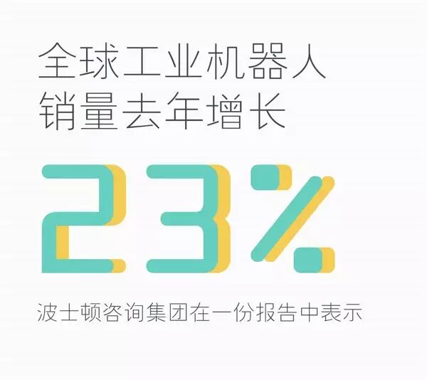 波士顿咨询集团(BCG)在一份报告中表示,全球工业机器人销量去年增长23%,到2018年将翻一番。与此同时,国际机器人联合会(International Federation of Robotics)预计,到2017年中国的操作性工业机器人库存将增长逾一倍至42.8万台,届时中国将成为全球机器人装机量最多的国家。我国工信部2013年年底发布的《关于推进工业机器人产业发展的指导意见》提出,到2020年我国每万名员工使用机器人台数将超过100台。
