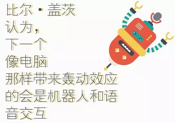 微软公司创始人比尔·盖茨(Bill Gates)在参加Reddit的“有问必答”(Ask Me Anything)栏目时谈到,下一个像电脑那样带来轰动效应的将会是机器人和语音交互。埃里克·布莱恩约弗森(Erik Brynjolfsson)在《第二次机器革命》中,提出计算机和数字技术正在帮助人类突破以前的能力限制,引领我们进入新的领域。而机器人就如同工业革命时期的蒸汽机一样,将会大大改变人类历史的发展进程。